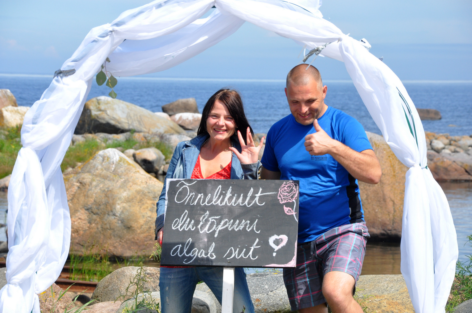Kirjeldus: Kui Aive lahkus ja kõigile lehvitas, lõi Egon näpu püsti ja ütles "Tuleb mis tuleb ... aga pulmad tulevad ja siis hoian ma oma kaasat "ÕNNELIKULT ELU LÕPUNI!